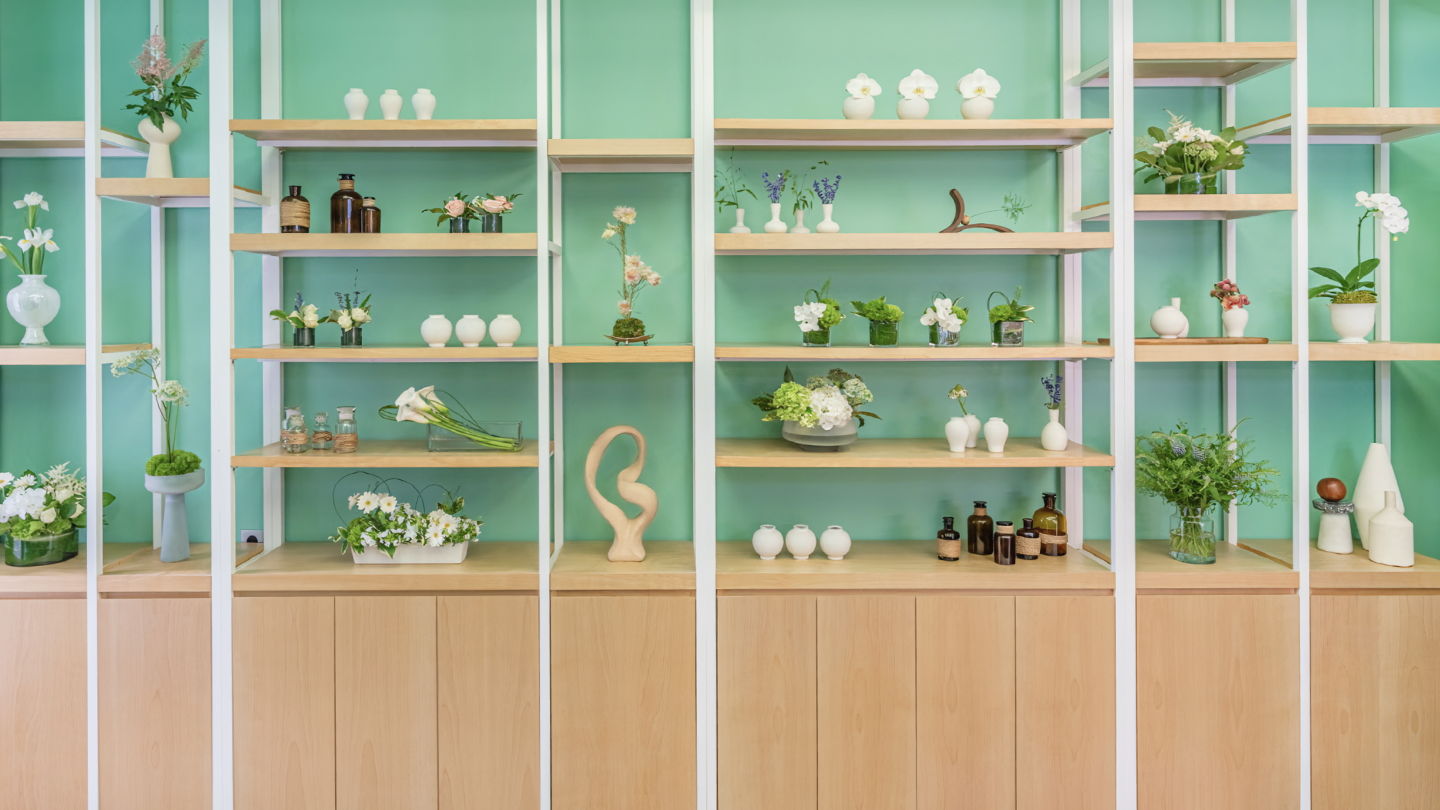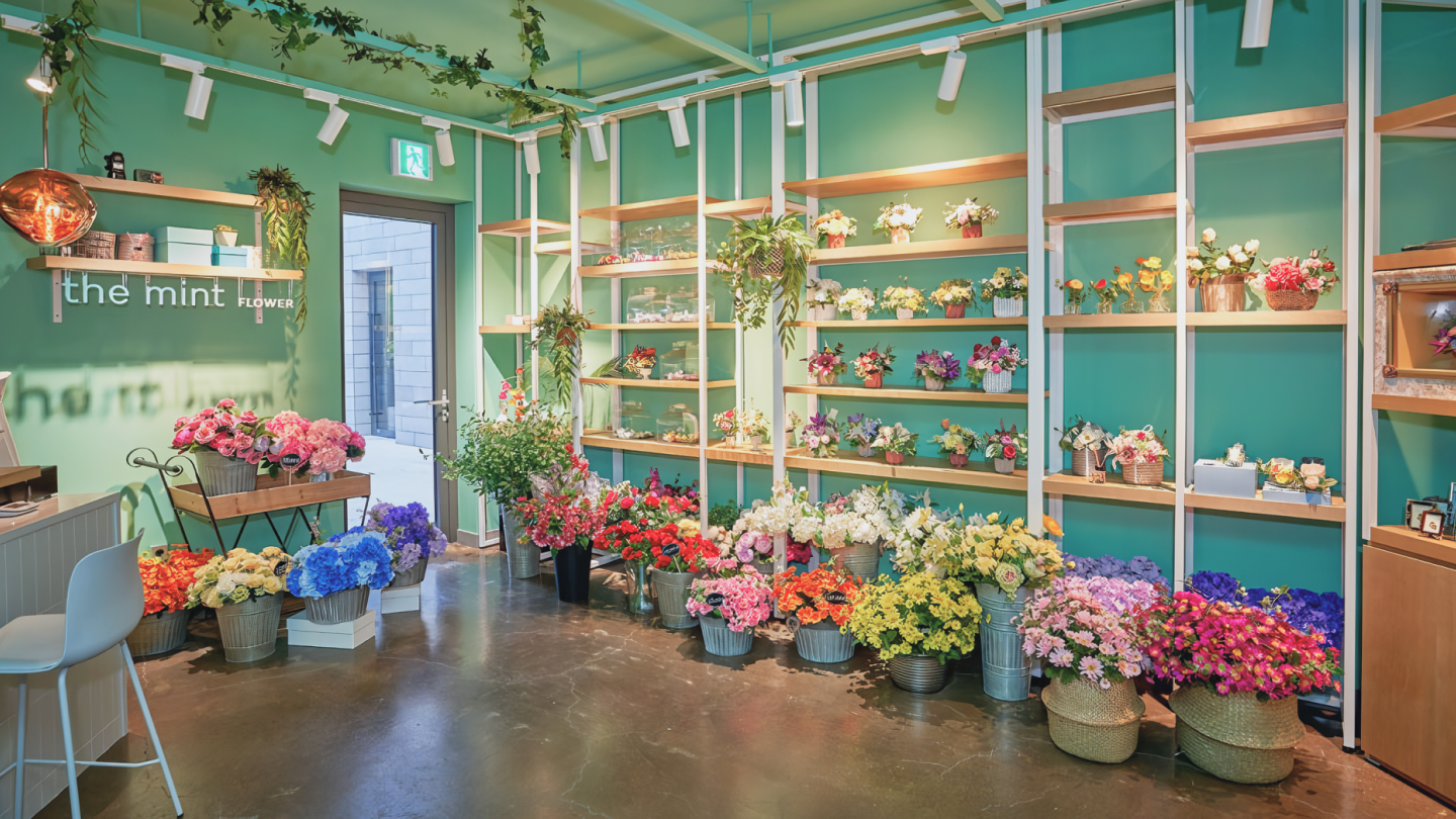 창 너머로 보이는 단정한 정원과 함께 꽃과 식물들이 가득한 THE MINT입니다. 용인공원 내 아너스톤 별관에서 찾아보실 수 있습니다.