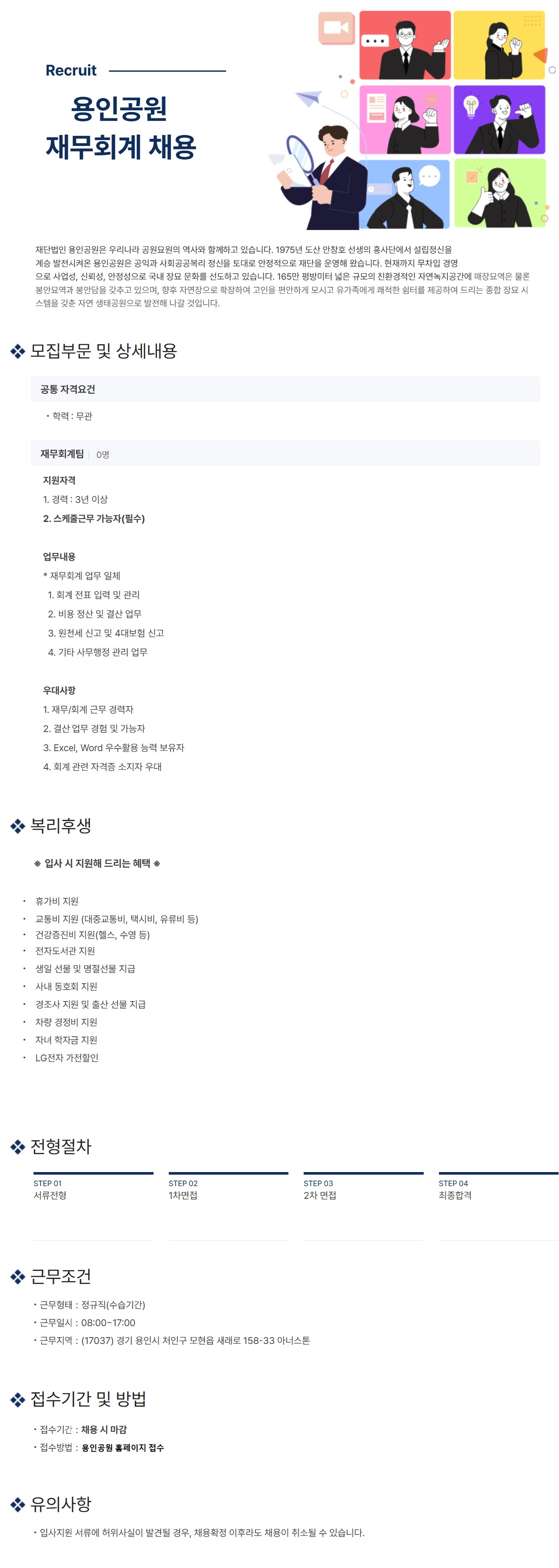 용인공원과 함께 나아갈 인재를 찾습니다.
