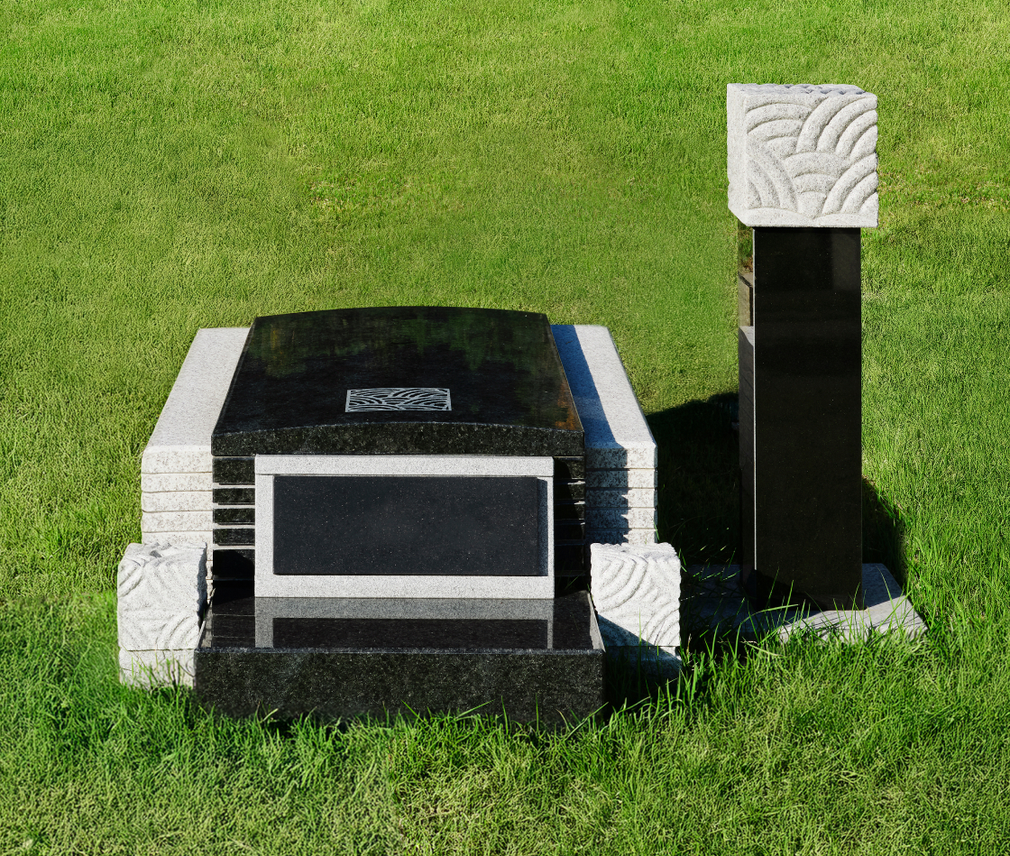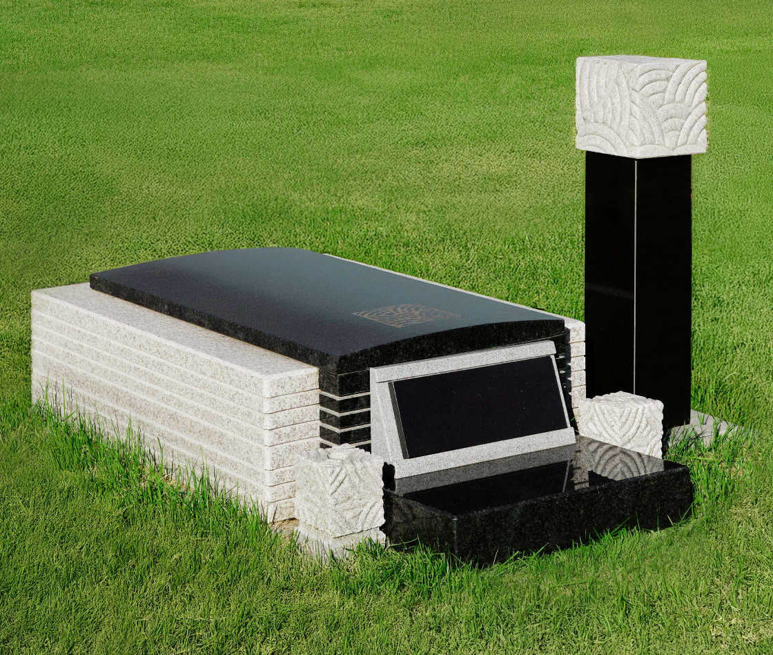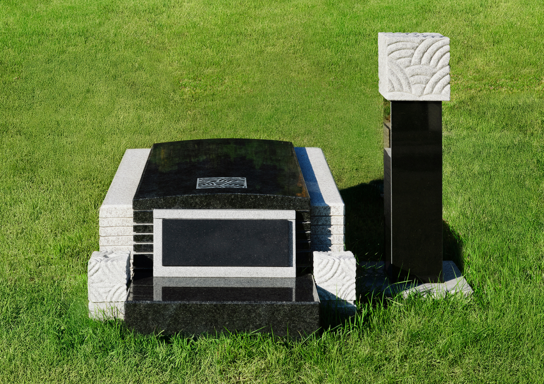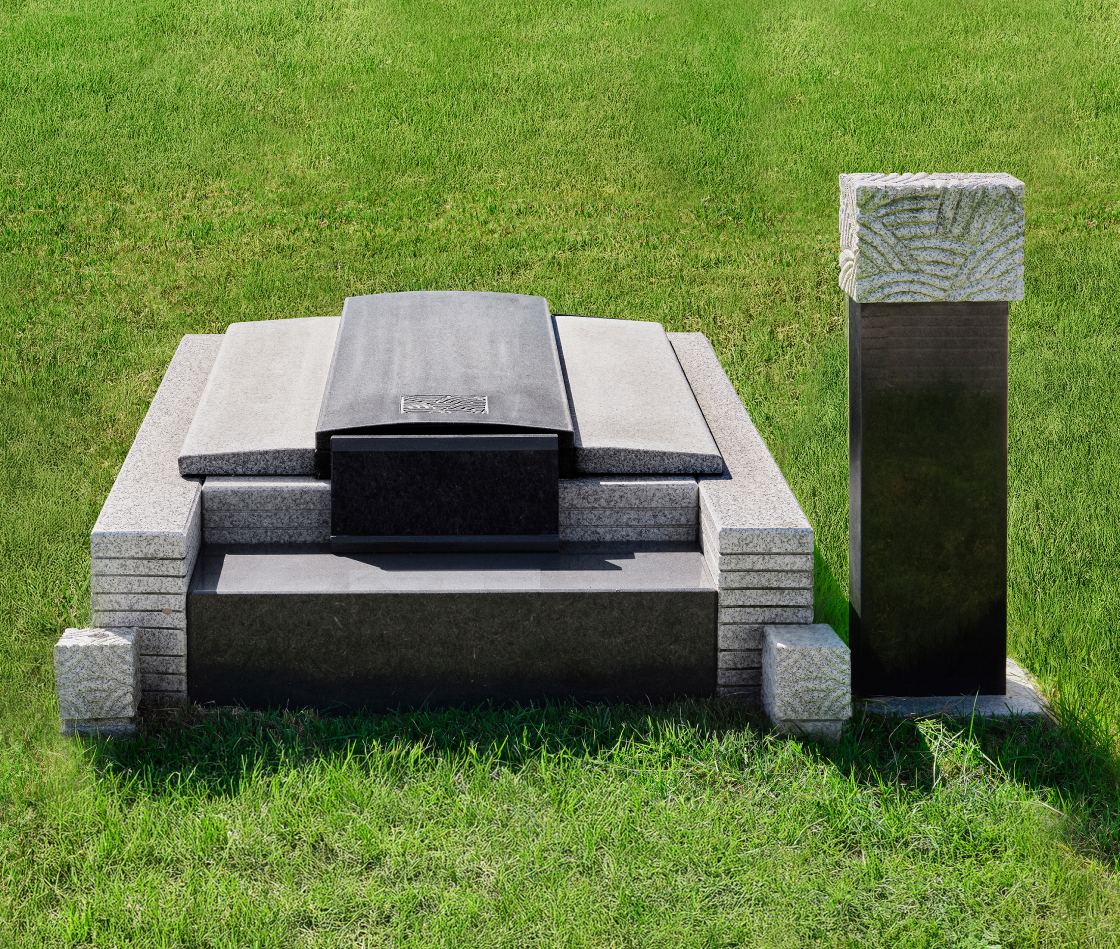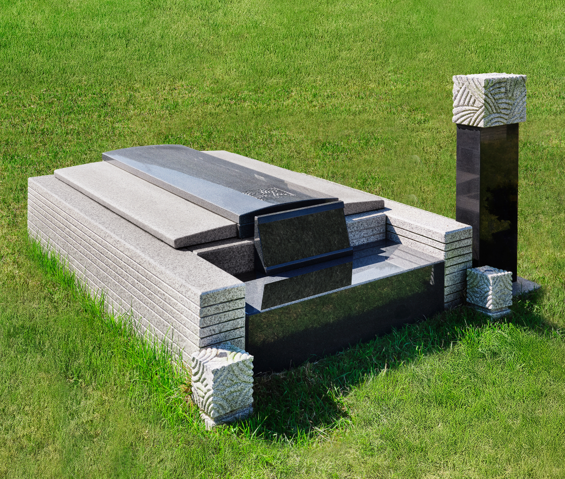격조 높은 석물 디자인의 독립적인 묘지로 자연의 탁 트인 전망에서 전통적인 제례가 가능합니다.