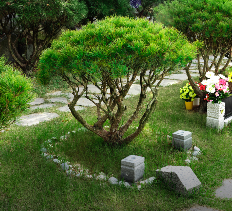 벌목, 벌초, 제초 등은 물론 단지 전체의 토목, 조경, 배수관리, 토질관리 등 가족처럼 세심하게 관리하여 조상님을 더 편안하고 안락하게 모시고 있습니다.