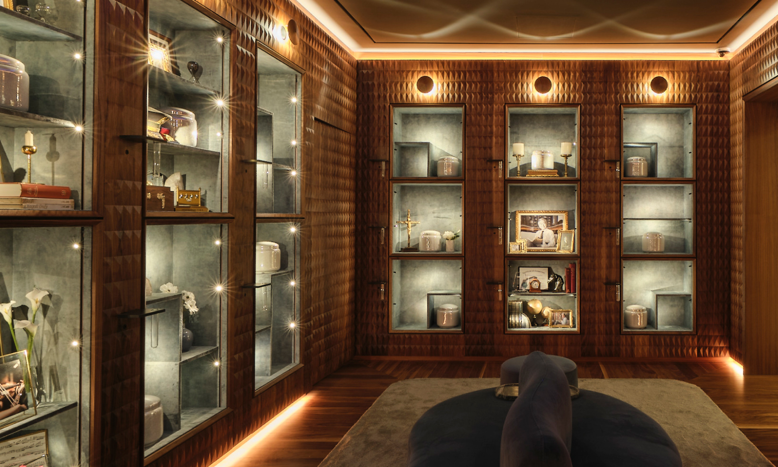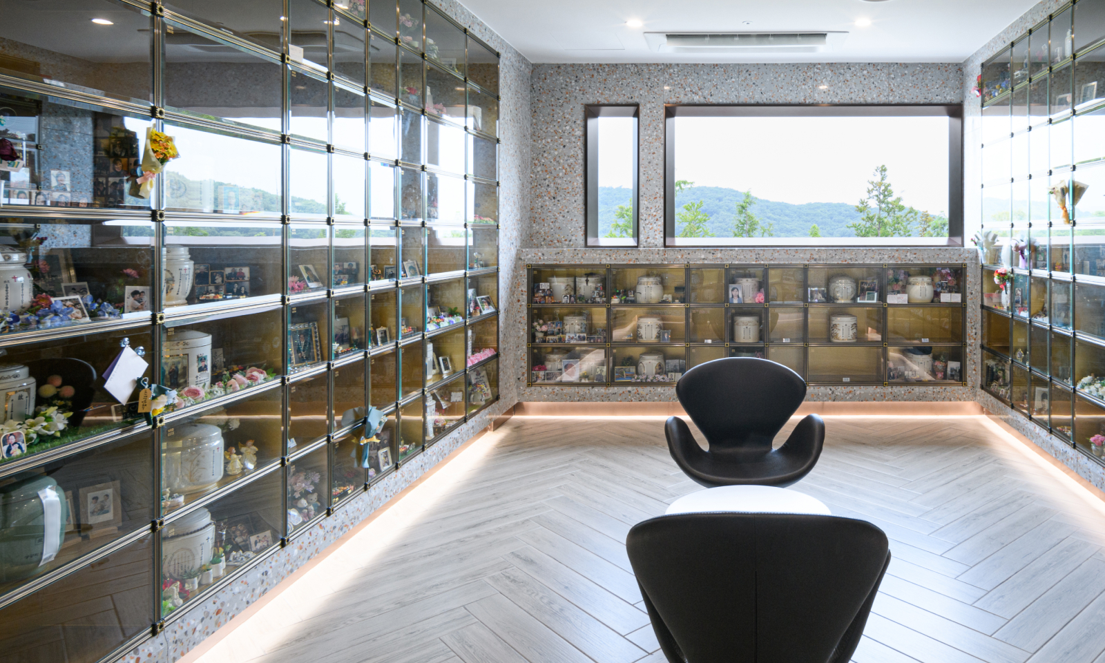 오롯이 독립된 봉안실과 한 발짝 문을 나서면 대자연을 마주할 수 있는 전용 테라스. 눈높이에 맞춰진 봉안단이 안온하고 경건하게 유족들의 마음을 감싸 안습니다.